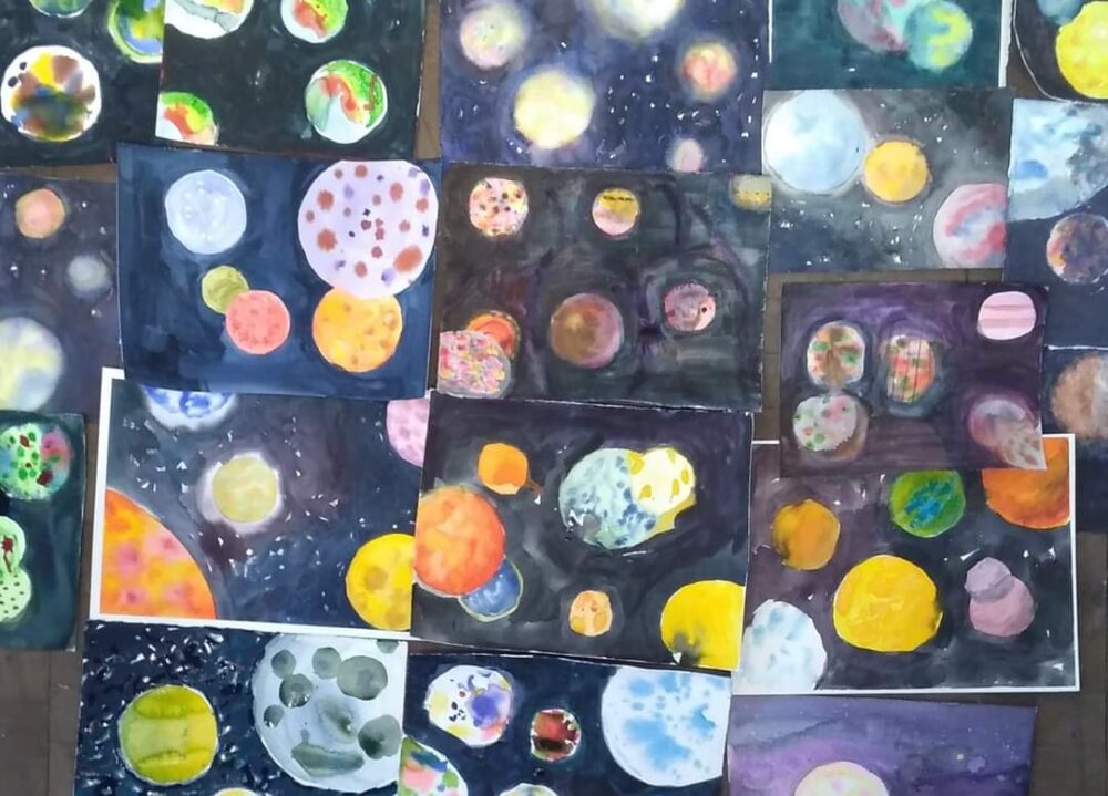 - explore shape and colour through a fantastical interpretation of "planets and stars''.